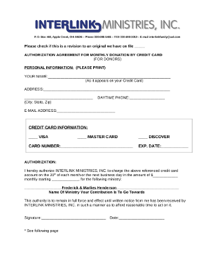 Want to make you donation each month using your credit card? A monthly credit card donation may be for you. You can use the form below to set this up and Interlink Ministries Inc. will do it for you each month.