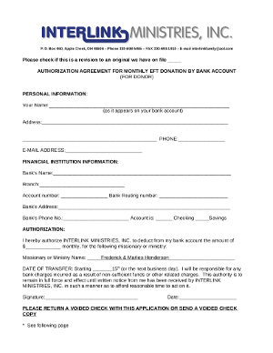 Are you trying to streamline you life? Want to cut down on the check writing each month? A direct deposit may be for you. With many on-line banks you can easily setup a direct deposit to be sent on a regular basis or you can use the form below and Interlink Ministries Inc. will do it for you.